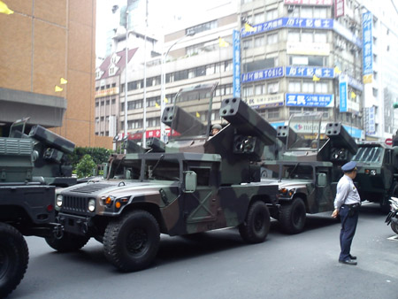 這是上星期六在台北車站附近看到的大量軍用車占用車道的畫面。