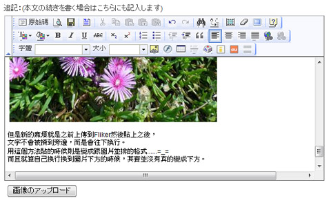 之前的貼圖一直都是先上傳到Fliker,然後再複製那邊的網址貼到這邊來。